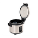 Cuerpo exterior en acero inoxidable, olla interior antiadherente de aleación de aluminio, sistema de sellado por micropresión, dispositivo de liberación de presión, con dos indicadores: uno para cocción y otro para mantener caliente, dispositivo de protección contra sobrecalentamiento, potencia de 2,200 W a 120 V / 60 Hz. Peso bruto de 13.8 kg, peso neto de 12.5 kg. 0.1 m³.